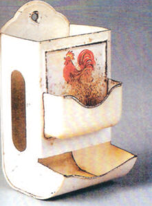 Larger safes and holders were made to hang on a wall or to rest on a table. Most of the ones that have survived are made of cast iron or painted tin. Those made of papier-mâché, glass or ceramic are rare and desirable.