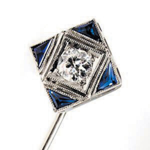 PHOTO CAPTIONS: (1) Art Nouveau stick pin. Gold with black opal. (2) \Art Deco stick pin. Diamond with faux saphire.