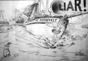 PHOTOS: Political cartoon poking fun at President Theodore Roosevelt. Cartoonist Walter Tittle Satirical cartoon of suffragette. Signed Earhardt. Satirical cartoon of carnival freak show. Signed Opper. PHOTO CREDITS: Anne Gilbert Collection