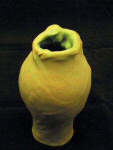 In 1896, Artus returned to the United States and work at Rookwood Pottery. It was in his home in Cincinnati that he created his first “Lorelei” vases, which measure only six and one-half inches in height. Having been produced at home, and not at Rookwood Pottery, these pieces were signed only “A. Van Briggle, 1898.”