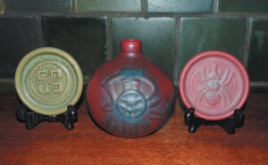 Photo: Native American “Whirling Logs,” Spiders, and other motifs on Van Briggle pottery.